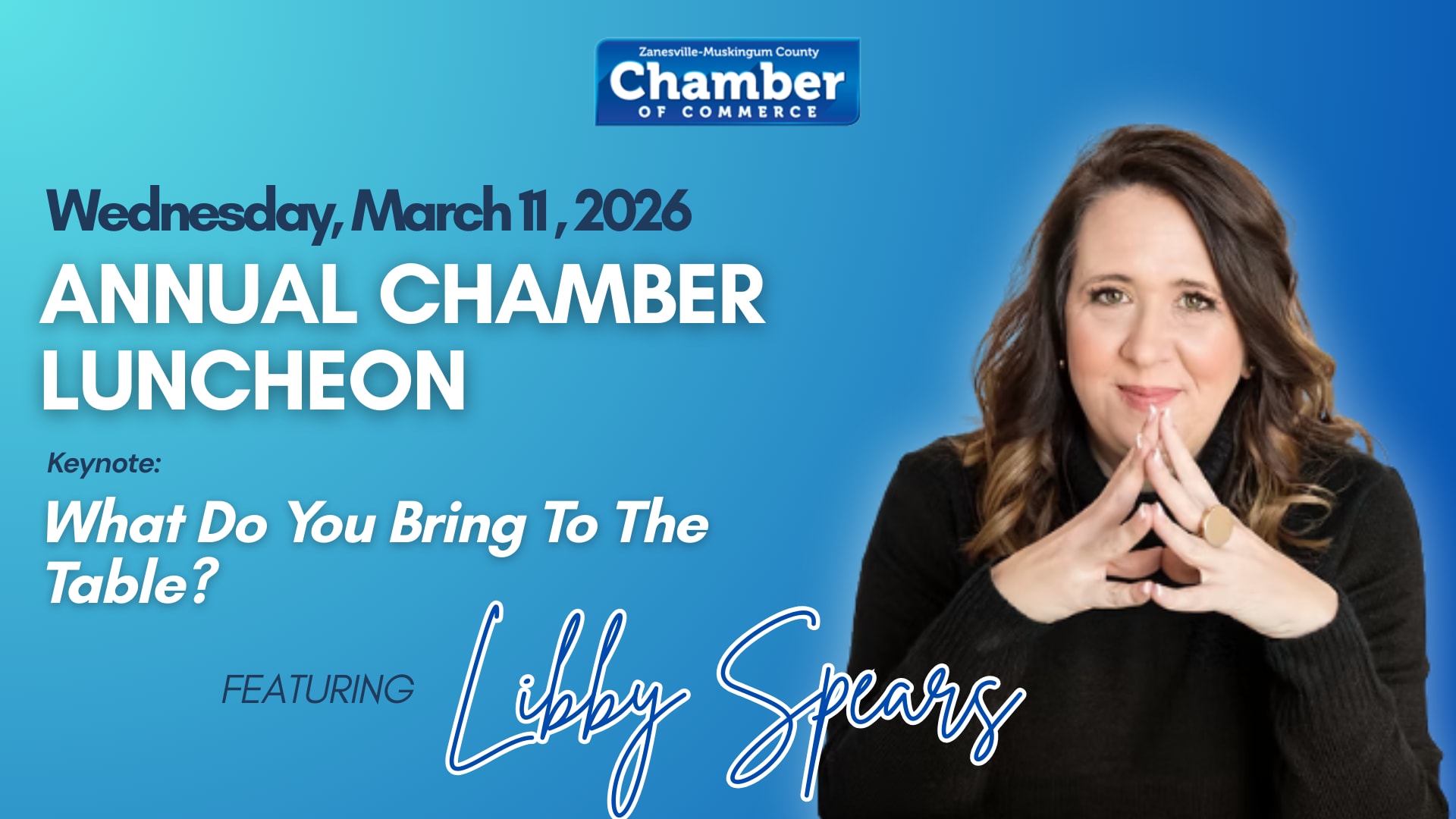 SOLD OUT! Grab your team for the Chamber’s largest annual event of the year! Our Annual Luncheon is a must-attend for Chamber members, offering a unique opportunity to connect, learn, and grow alongside 250+ local business representatives. Featuring Keynote Speaker Libby Spears, an internationally sought-after leadership expert and founder of Bravo CC. In her keynote, “What Do You Bring to the Table?”, Libby challenges attendees to cut through the noise and confidently recognize the value they bring, as individuals, as teams, as organizations, and as a community. With humor, storytelling, and practical insights from two decades of experience, this promises an afternoon of connection, insight, and inspiration you won’t want to miss!